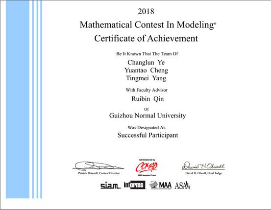 对于此次比赛,公司高度重视,2月9日至13日的比赛期间,陈云坤副董事长、创新创业公司相关负责人先后亲临参赛现场给予关心和鼓励,让指导老师和参赛同学们备受鼓舞。在公司副经理陈震和各位指导老师的带领下,参赛同学经过96小时的昼夜奋战,认真分析赛题、建模、解答,并全英文撰写提交论文。最终,BV伟德官方网站15卓越班陈柱、陈敏及16数本一班的王正三位同学在欧阳汉老师的指导下,获大赛二等奖;BV伟德官方网站15卓越班杨廷梅、程远涛和叶昌伦三位同学在秦瑞斌老师的指导下获成功参赛奖。