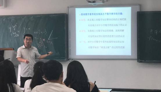 2018年6月15日,福建师范大学博士导师李祎教授应邀在BV伟德官方网站为公司师生作题为“高水平数学教学‘学什么’”的学术讲座。公司BV伟德官方网站师生共50余人聆听了讲座。