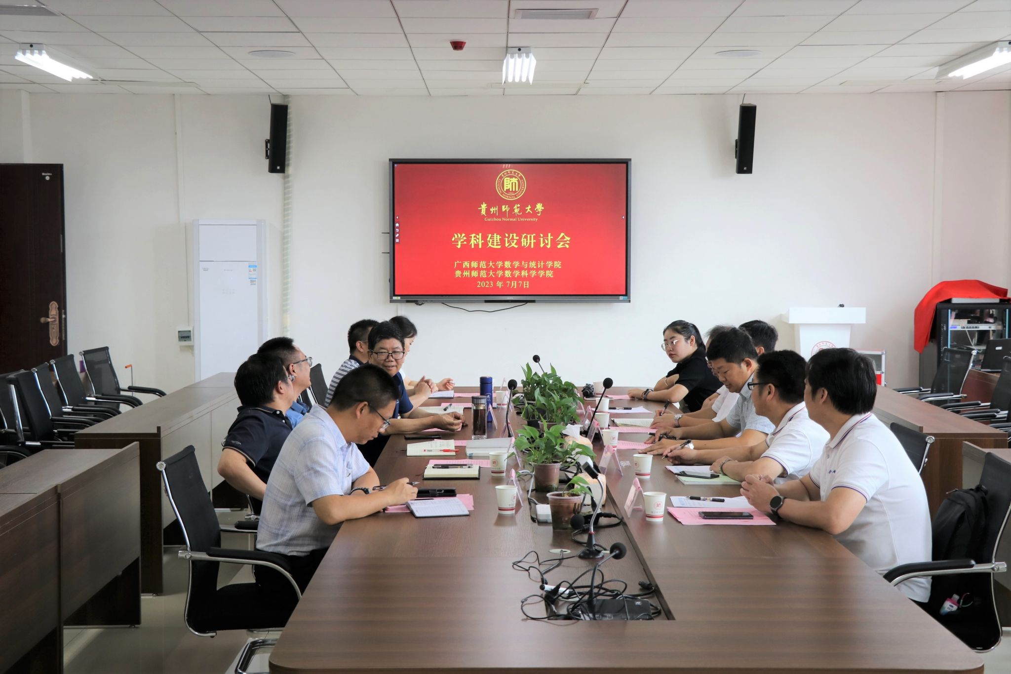 7月7日上午,广西师范大学数学与统计公司与公司BV伟德官方网站在公司BV伟德官方网站教职工之家会议室举办“联学共建”暨团队建设研讨会。广西师范大学数学与统计公司党委书记陆锋、经理张军舰、副经理卢家宽、副经理张映辉、经理助理梁鑫、团委书记班宁;公司数学科学公司党委书记孙谦,经理卢琳璋,副经理吴云顺,党委委员、经理助理龙见仁等参加。