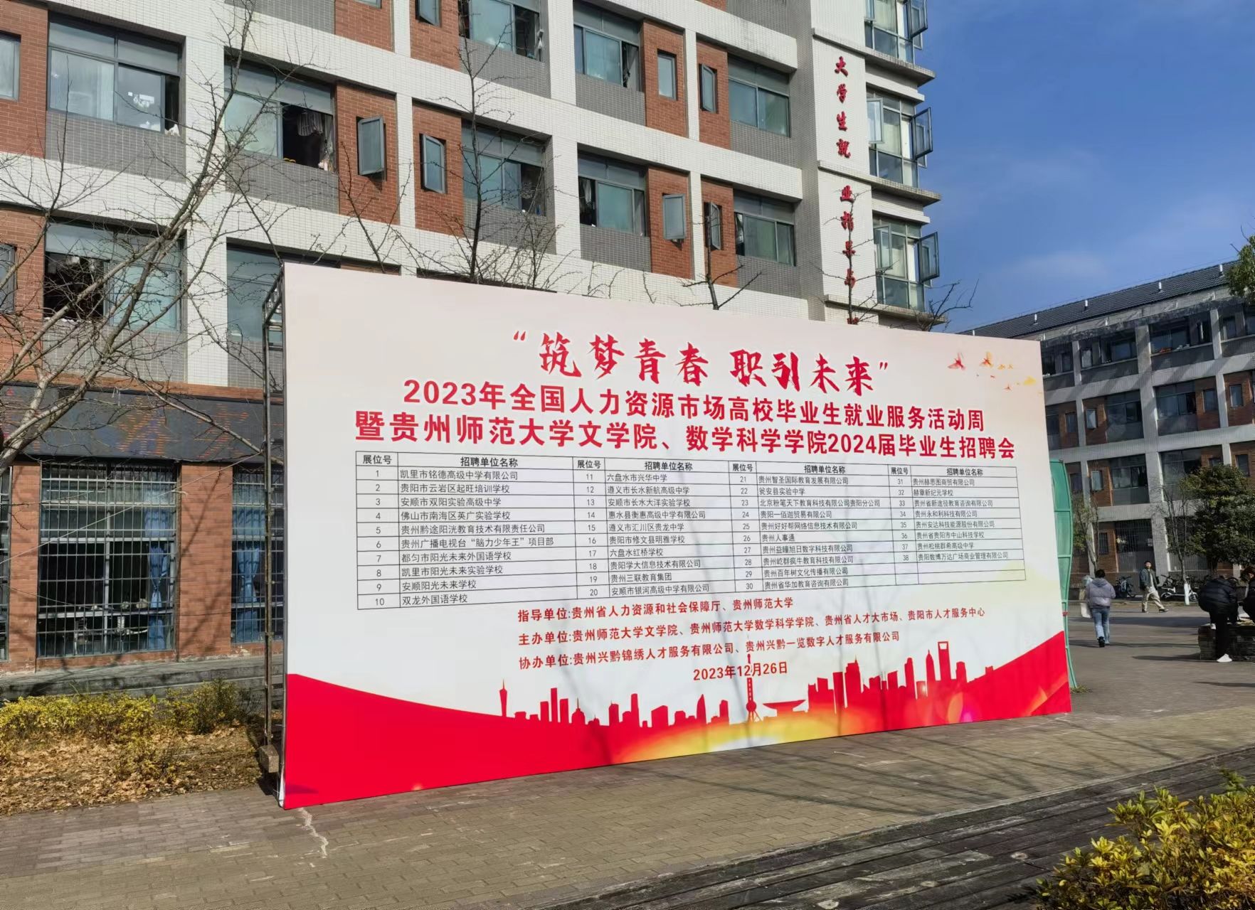 为认真学习贯彻党中央、国务院,省委、省政府,省委教育工委、教育厅和公司“稳就业”工作部署精神,12月26日上午,BV伟德官方网站、文公司、贵州省人才大市场、贵阳市人才服务中心联合在公司东校区就业服务中心举办“筑梦青春,职引未来”2024届毕业生招聘会。本次招聘会由省人力资源和社会保障厅、公司招生与就业指导处指导,贵州兴黔锦绣人才服务有限公司,贵州兴黔一览数字人才服务有限公司协办。邀请到了长水教育集团、贵州三联教育集团、贵阳数博万达广场商业管理有限公司等38家用人单位来校揽才,提供岗位800余个。