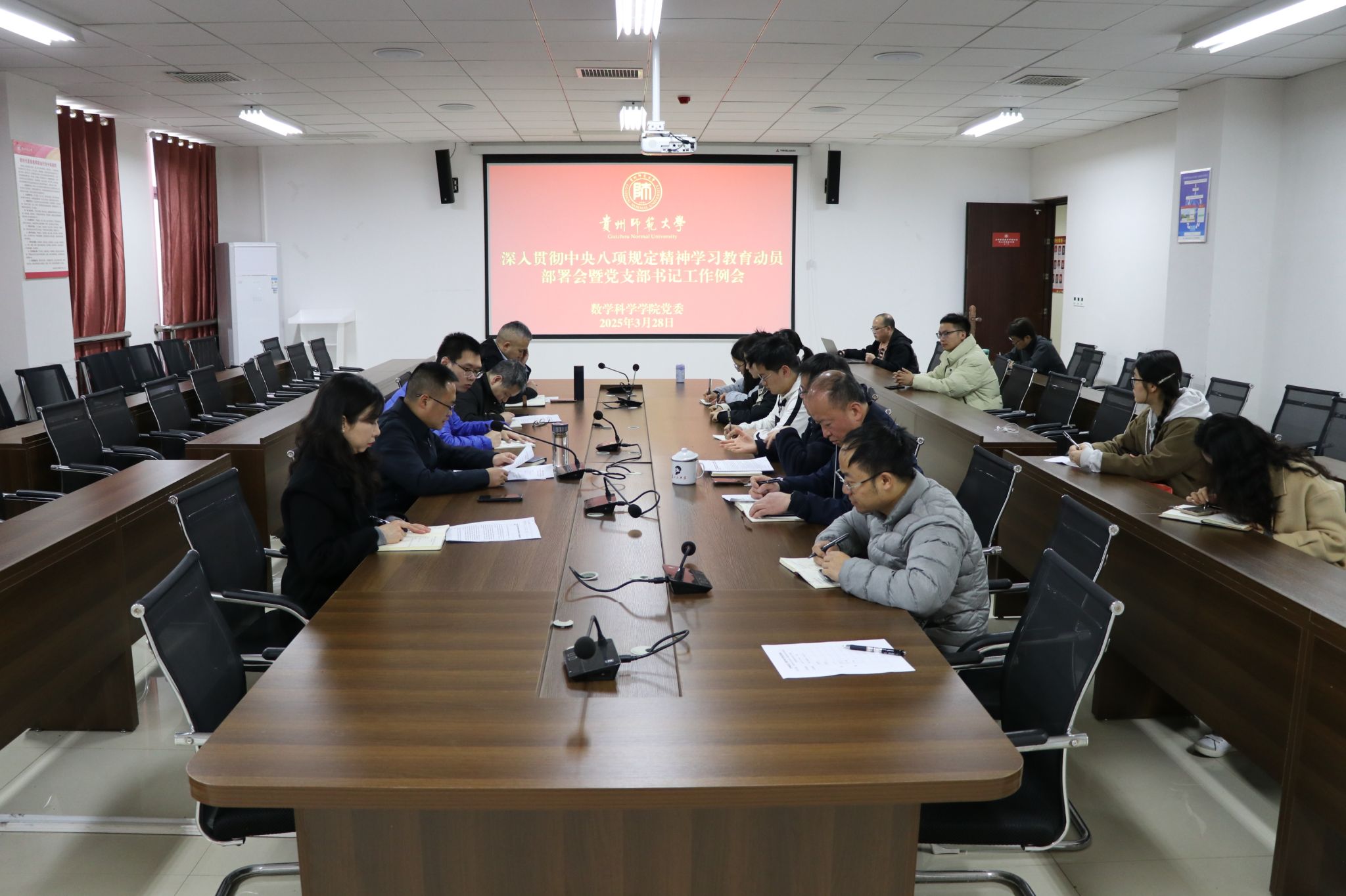 3月28日上午,数学科学公司党委在公司教职工之家会议室召开深入贯彻中央八项规定精神学习教育动员部署会暨党支部书记工作例会,传达学习习近平总书记关于开展深入贯彻中央八项规定精神学习教育的重要讲话精神, 传达学习党中央、省委、公司党委关于开展深入贯彻中央八项规定精神学习教育相关会议和文件精神;审议通过《中共BV伟德官方网站委员会关于在全院开展深入贯彻中央八项规定精神学习教育的实施方案》;在全院正式启动深入贯彻中央八项规定精神学习教育。
