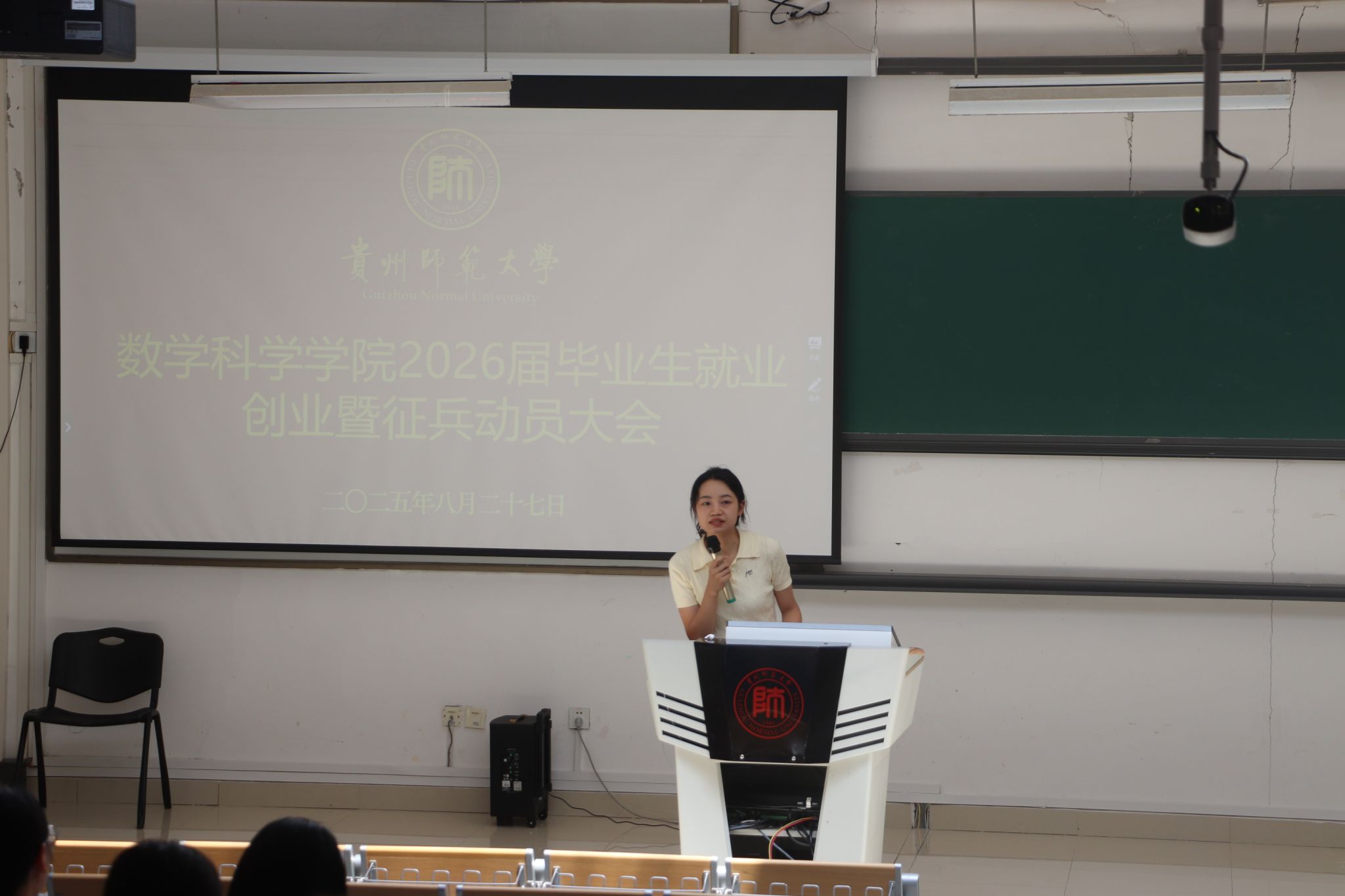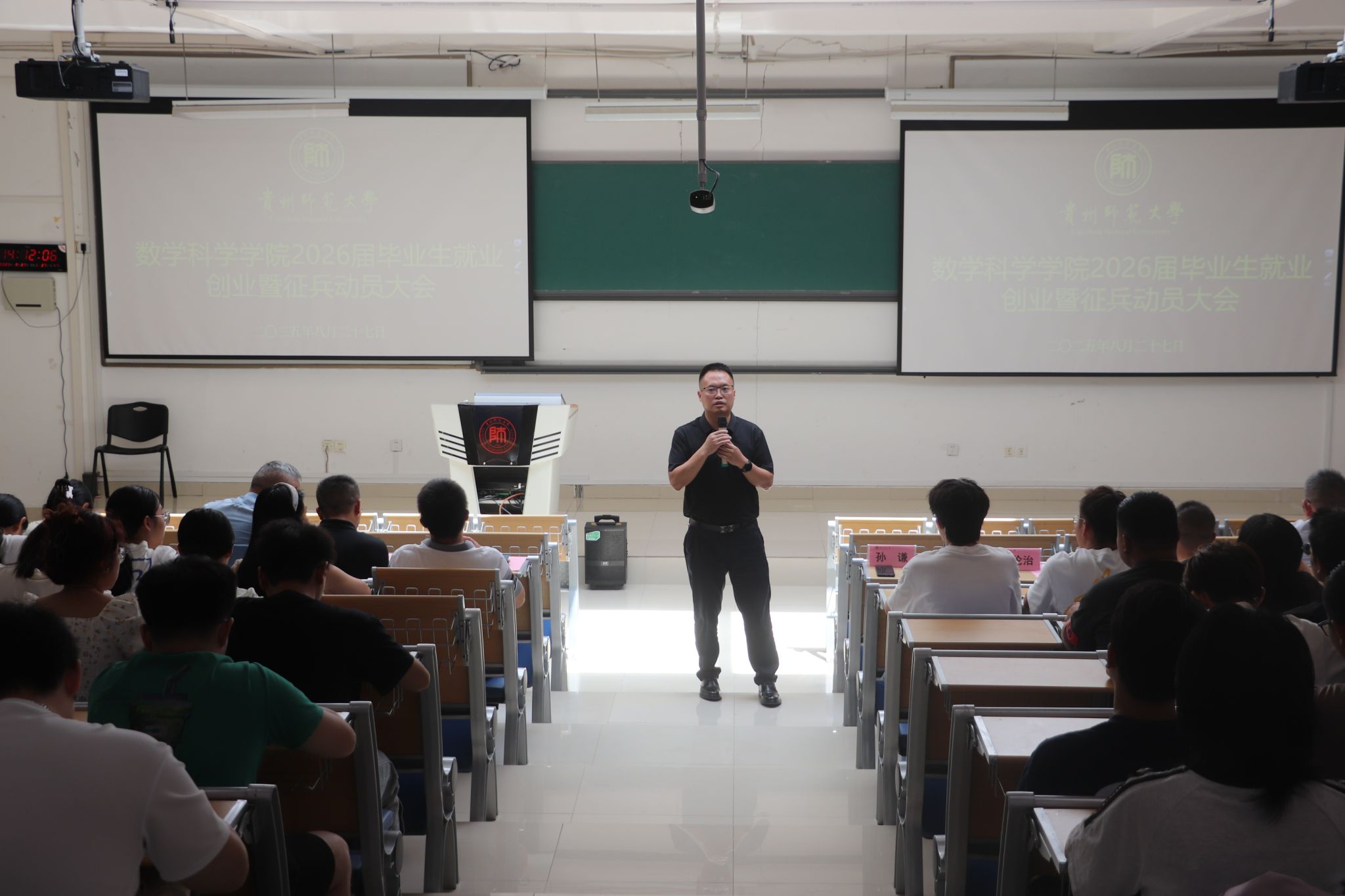 8月27日,BV伟德官方网站在东校区公教6301教室举行2026届毕业生就业创业暨征兵工作动员大会。党委书记孙谦、经理吴云顺、党委副书记江剑虹、副经理邓伦治、龙见仁,数学与应用数学系主任唐树安、应用统计学系主任刘红军、信息与计算科学系教师代表安静、征兵工作联络员李丹、毕业班辅导员徐彬及全体2026届本科毕业生参会。
