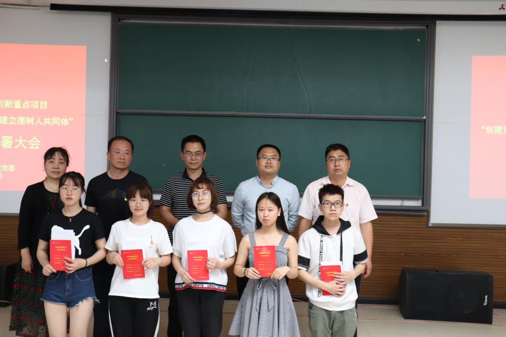 会上,杜梅英首先介绍了召开实施动员大会的背景和实施党建重点创新项目的目的。随后,公司党委书记孙谦,副书记赵颐,党委委员、副经理陈震、夏小刚首先向教职工党支部代表发放《党建育人先锋岗·结对育苗行动记录手册》,向2018级各班代表发放了《员工结对育苗行动成长记录手册》。教职工党员代表刘奇龙发言表态,作为一名普通教师党员,他将以“四有”好教师标准严格要求自己,严格按照公司党委要求完成好结对育苗任务。2018级员工代表刘浩宇发言,感谢公司领导和老师的关怀,同时真情吐露2018级员工希望得到公司老师们指导和帮助的心声。