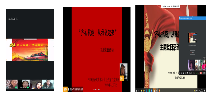 为进一步深入学习贯彻习近平总书记重要指示精神,筑牢党支部的战斗堡垒作用,充分发挥党员的先锋模范作用,2020年3月数学科学公司党委组织全体师生党员充分运用“线上党支部”开展了“齐心抗疫,从我做起”主题党日活动和“我和我的祖国”主题教育活动。