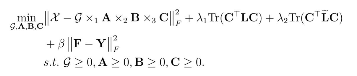 非负Tucker分解(NTD)是一种提取张量数据低维表示的常用技术,但其本质是无监督的。图作为呈现数据空间几何信息的重要方式,已被广泛使用。许多基于图的NTD方法已被提出。然而,这些方法在利用图时依赖于数据空间的单一表示,而忽略了数据空间的其他有意义的表示形式中的图。为了解决这一局限性,我们构造一个多图正则化并引入到 NTD中,提出一种多图正则化NTD(MGNTD)方法。该方法能提取一个有效的保留了原始数据空间中的多种图结构的低维表示。此外,我们融入少量标签信息到该方法中,将它扩展为一种半监督方法—多图正则化半监督NTD(MGSNTD)。该方法能通过传播标签信息并保留数据空间中的多图结构,提取到一个更好的低维表示。针对这两种方法,文中给出了有效的求解算法,并分析了相应的收敛性。在真实数据集上的大量实验结果表明这两种方法的有效性。