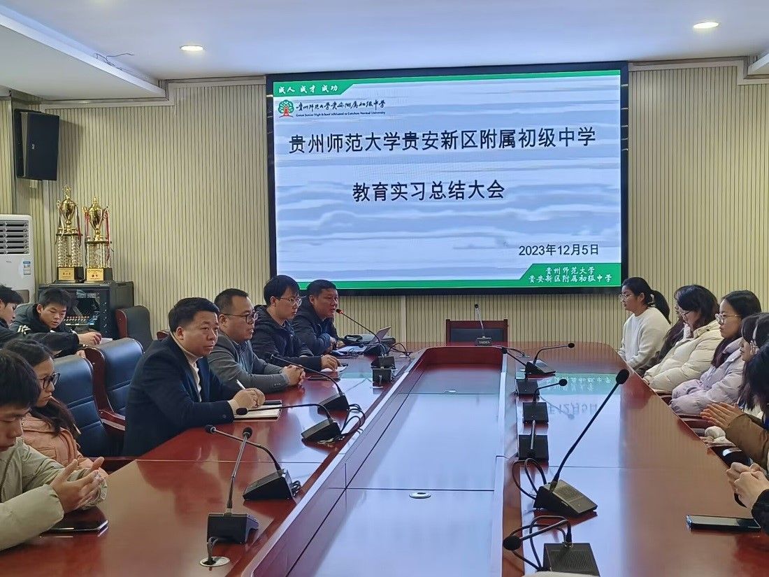 12月5日,BV伟德官方网站贵安新区附属初级中学举行教育实习总结大会。BV伟德官方网站数学教育研究所所长杨孝斌教授,副所长、带队教师刘兴福博士;贵师大贵安附属初级中学副董事长贺宁馨老师、教务处主任张雪飞老师,以及全体实习生参加会议。会议由张雪飞主持。