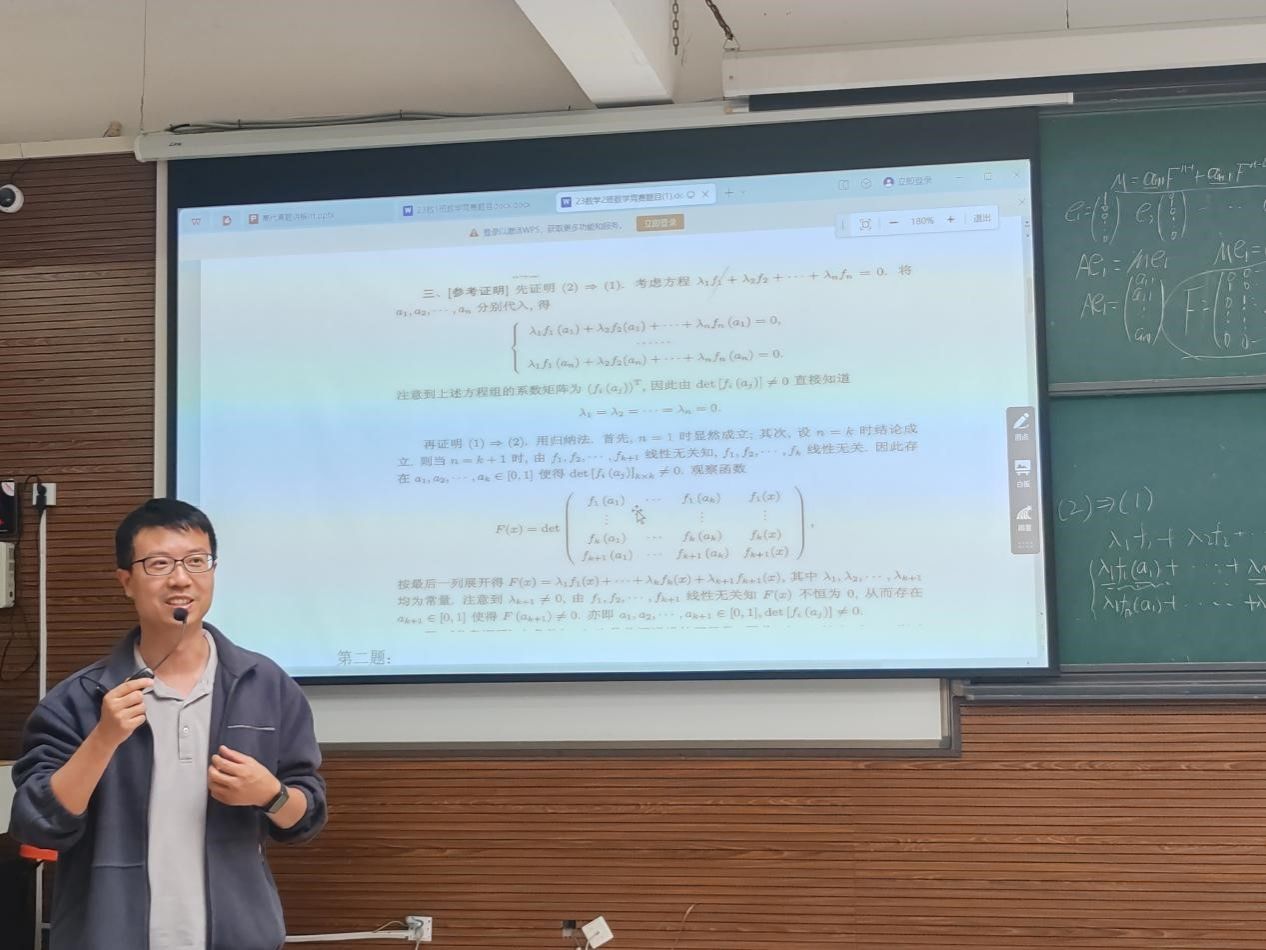 10月21日及10月31日下午,BV伟德官方网站朱力博士与刘奇龙副教授分别于BV伟德官方网站花溪东校区GJ6302教室和GJ6202教室开展了“大学数学竞赛(高等代数)”讲座及训练,2022级和2023级数学与应用数学专业全体同学参加了此次活动。