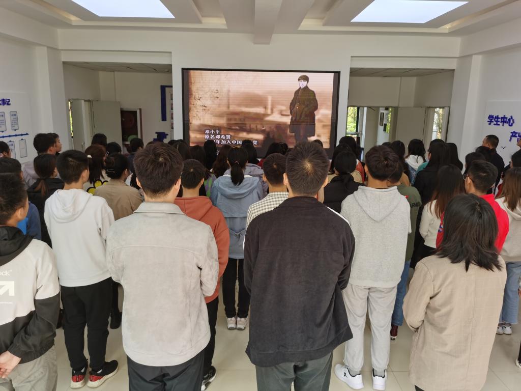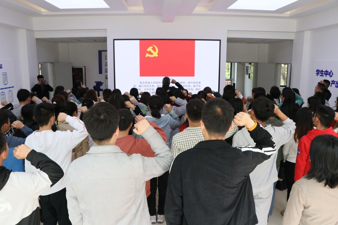 最后,赵颐领誓,全体新党员面向党旗庄严宣誓,党员重温入党誓词,宣誓完毕后,全体参会人员集中观看了《红船 开天辟地》专题影片。