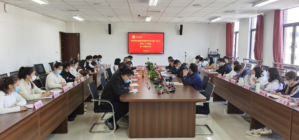 11月3日下午,数学科学公司党委在花溪校区公司教职工之家会议室召开理论学习中心组扩大会议,专题学习党的二十大精神。公司领导班子成员及师生党支部书记、支委参加集中学习,会议由公司党委副书记赵颐主持。