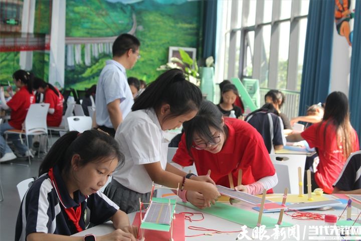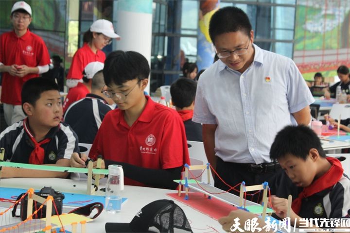 随后,小员工代表在老员工志愿者带领下登上坝陵河大桥腹地,学习大桥设计、建设中所蕴含的数学知识。最后,老员工志愿者与小员工代表共同制作了坝陵河大桥的模型。