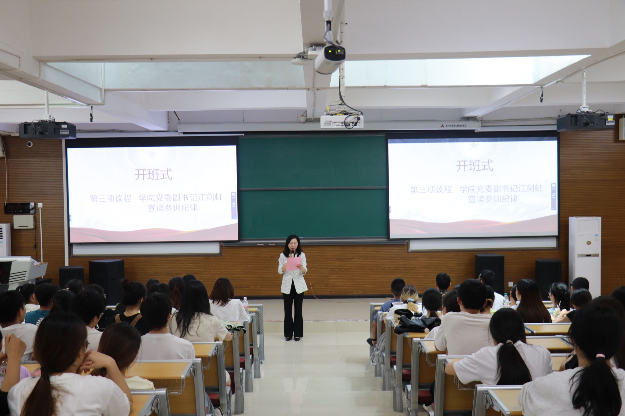开班式议程第三项,江剑虹宣读团校纪律,要求全体学员严格遵守纪律规矩,以端正的态度和严谨的作风完成培训任务。